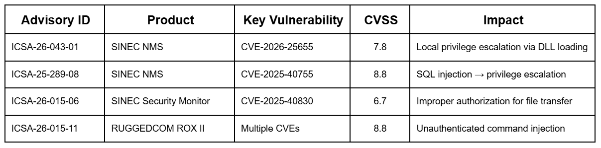If you monitor CISA’s ICS advisories, you’ve noticed a pattern: Siemens keeps appearing. SINEC NMS. RUGGEDCOM. SIMATIC. SCALANCE. The advisory IDs pile up like shipping manifests. But this is actually a math problem, not necessarily a quality problem.